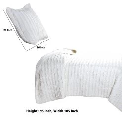 Yukon Fabric 3 Piece King Size Quilt Set With Ruffle Striped Pattern, White-Benzara