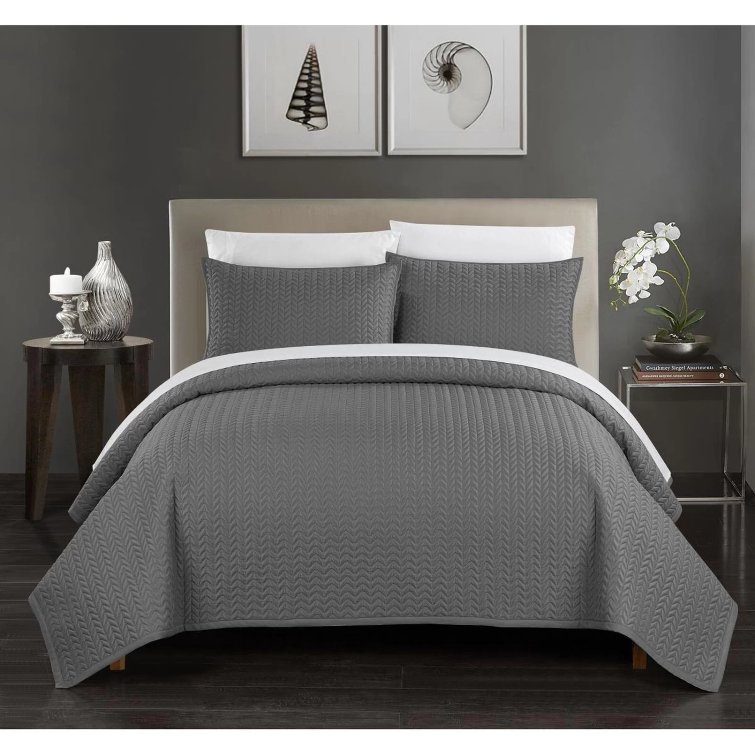 Chic Home BQS00903-BIBTR-US 5 Piece Beiler Quilt Cover Set Geometric Chevron Quilted Bed in A Bag Bedding with Sheets Decorative Pillow, Charcoal Grey – Twin