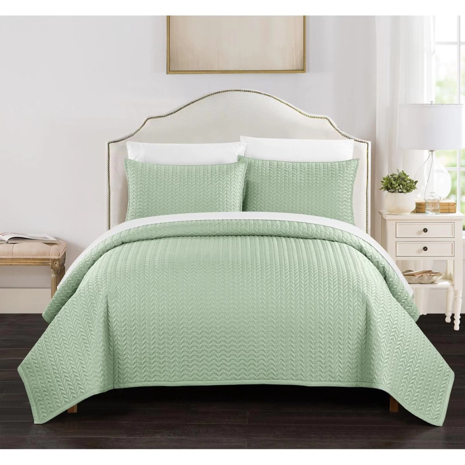 This amazing bed in a bag quilt set features a minimalist, contemporary design with geometric chevron quilting. A sheet and pillowcase set and design coordinated pillow shams are included to complete the bed in a bag set.