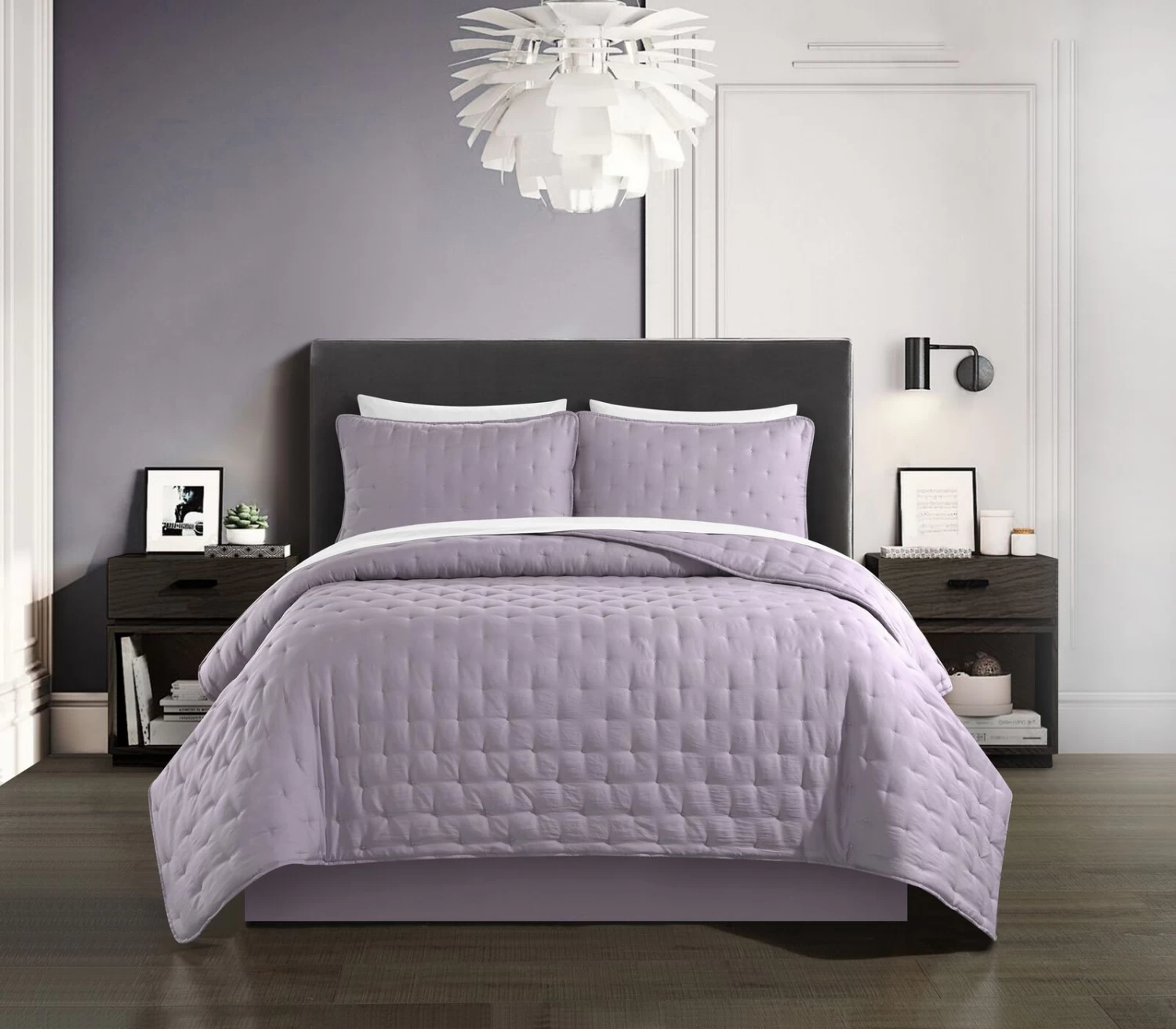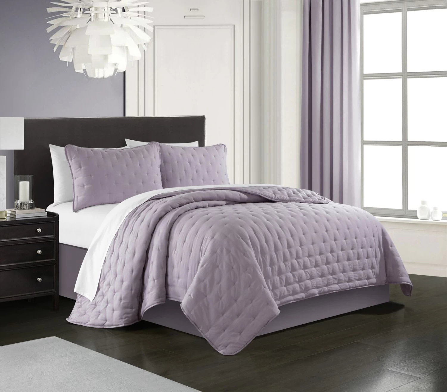 Give your bedroom a fresh, clean look with the laid back style of the Kamdan quilt set from Chic Home. This quilt features a tufted cross stitched design on the face. Two design coordinated pillow shams complete the look. A four piece sheet set (1 fitted sheet, 1 flat sheet and 2 pillowcases) is included with every set. Material: Microfiber Care Instructions: Machine washable. Available size – King 104×90″. Color: Lavender.