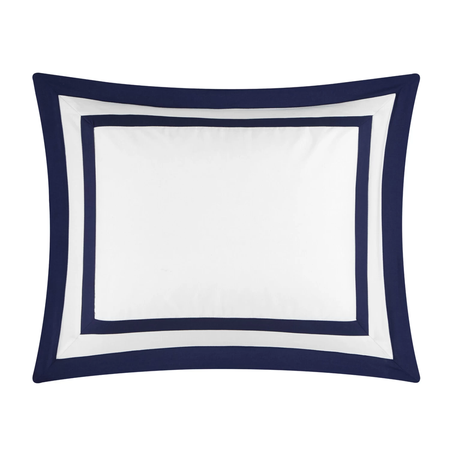 Give your bedroom a bold new look with the unique style of the Hortense comforter and quilt set from Chic Home. This set includes a stylish two-tone hotel collection design comforter and a fish scale pattern quilt, giving you the freedom to mix and match as you please. Two unique decorative pillows and design coordinated shams complete the look. A sheet and pillowcase set is included. Available Size: Queen. Color: Navy.