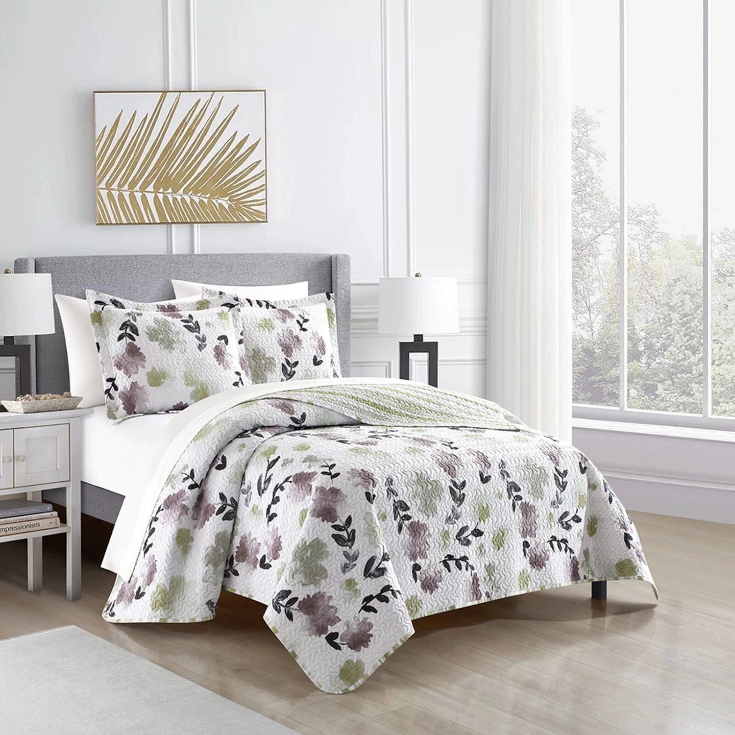 Chic Home Parson Green Quilt Set Reversible Watercolor Floral Print Striped Pattern Design Bed in a Bag Bedding Multi-color