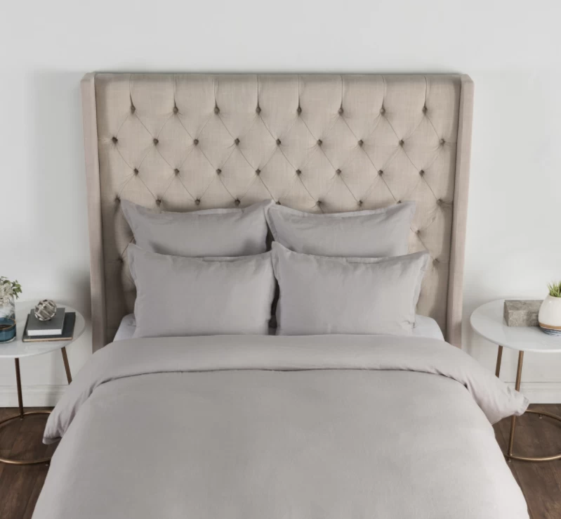 The Classic Home 3 Piece Dove Gray Arcadia King Set features two shams and one duvet in a dove gray cotton linen blended fabric. This set has been dyed and washed for a soft hand feel. It’s a button closure duvet style and an envelope closure for the shams included. This set is machine washable in cold water, and tumble dry on a low heat setting.
