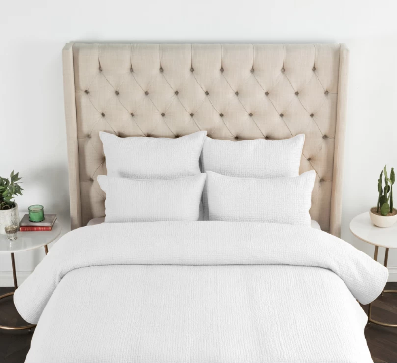 The Classic Home 3 Piece White Danica Queen Quilt Set includes two Euro shams and one quilt in a 100% cotton voile. Fabric is dyed and washed to give a soft hand feel; this fabric also has cotton binding detail. This set is machine washable in cold water, and tumble dry on a low heat setting.