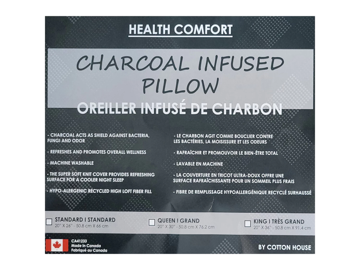 Cotton House – Charcoal Infused Pillow, Hypoallergenic, Queen Size