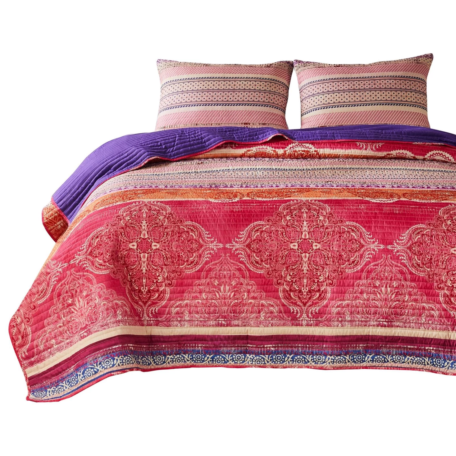 - Bohemian inspired design with paisleys, medallion, and striped pattern