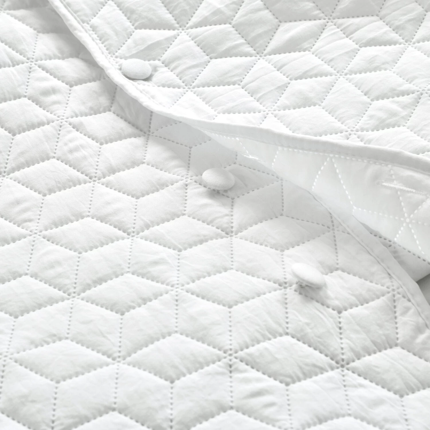 Refresh your master or guest bedroom with this bedspread set featuring embossed geometric quilting detail and fitted ruffle skirt that kisses the floor. This set is made with soft crinkle microfiber and includes 2 matching pillow shams with ruffle trim.