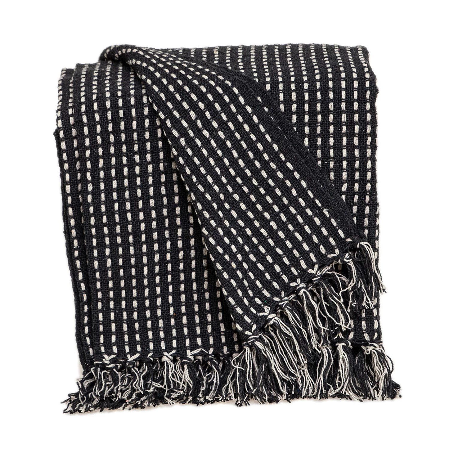 Simple yet stylish, the Black and White Handloom Woven Throw Blanket makes it’s presence felt in any form or décor. Woven to perfection sporting a clean running stitch pattern, the pure cotton soft to touch fabric provides warmth for those perfect winter nights. The classic black and hints of white combo makes it an ideal addition to your existing decor whether you wish to highlight your space or add extra comfort, this throw fulfills every need while adding texture and elegance to your home. 67″ x 52″ x 0.5″