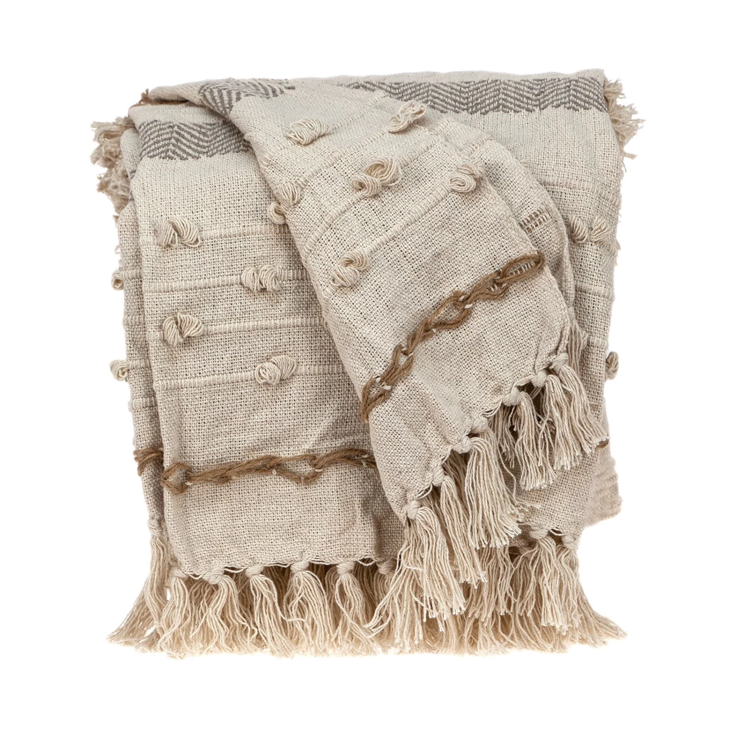 Classic Boho Fringed and Textured Woven Handloom Throw