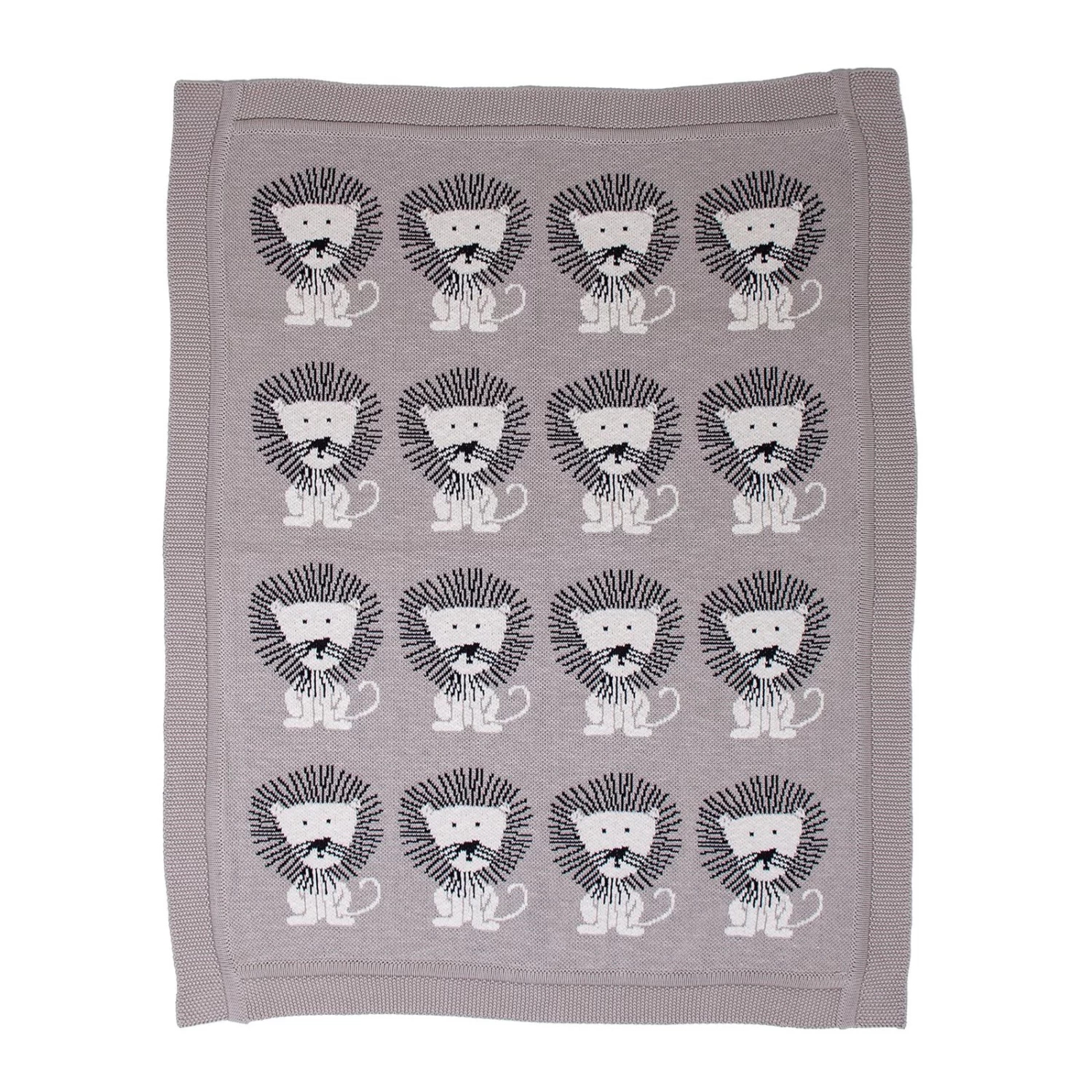 Grey Lots Of Lions Woven Knitted Baby Blanket