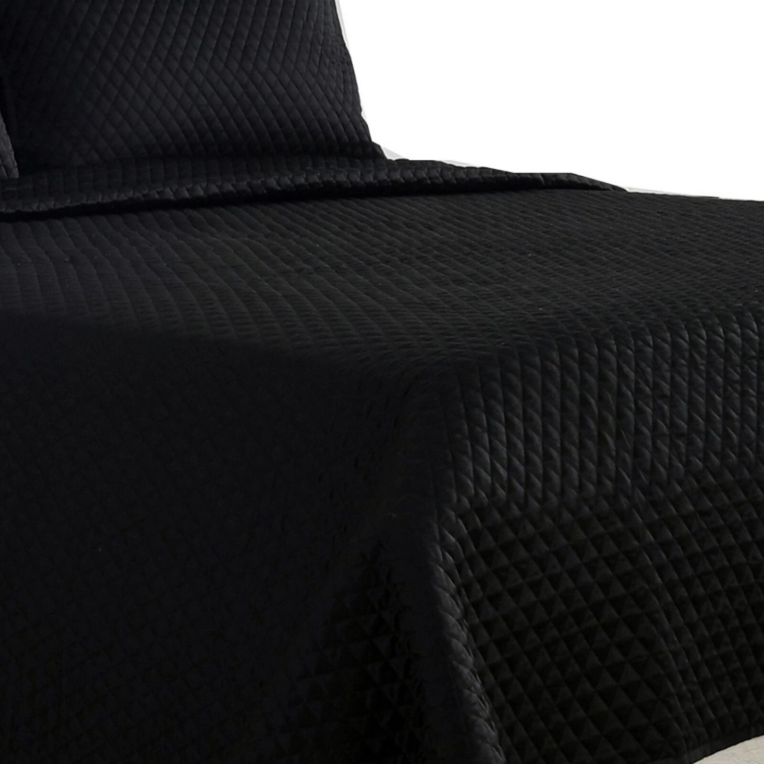 Comfortably soft and luxurious in design, our tastefully hand stitched king size black sateen quilt is filled with plush cotton and has a matte poly satin front and back for unmatched relaxation. Its hand quilted diamond patterns, stylish mitered corners, and self binding edges make this a purely sublime bedding accessory. Check out our Kahn collection for more options.