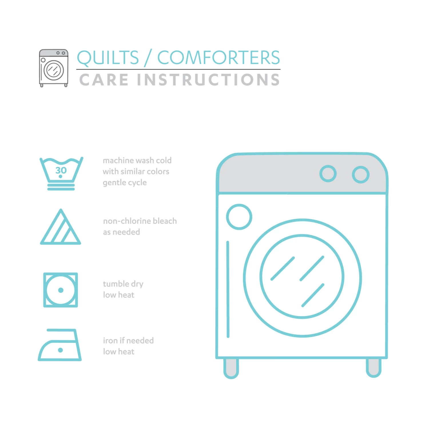 This lovely leaf and floral printed design has a totally updated feel because of the quilting techniques which are used. The reversible side is a very pretty geometric design so depending on your mood you can switch it around.