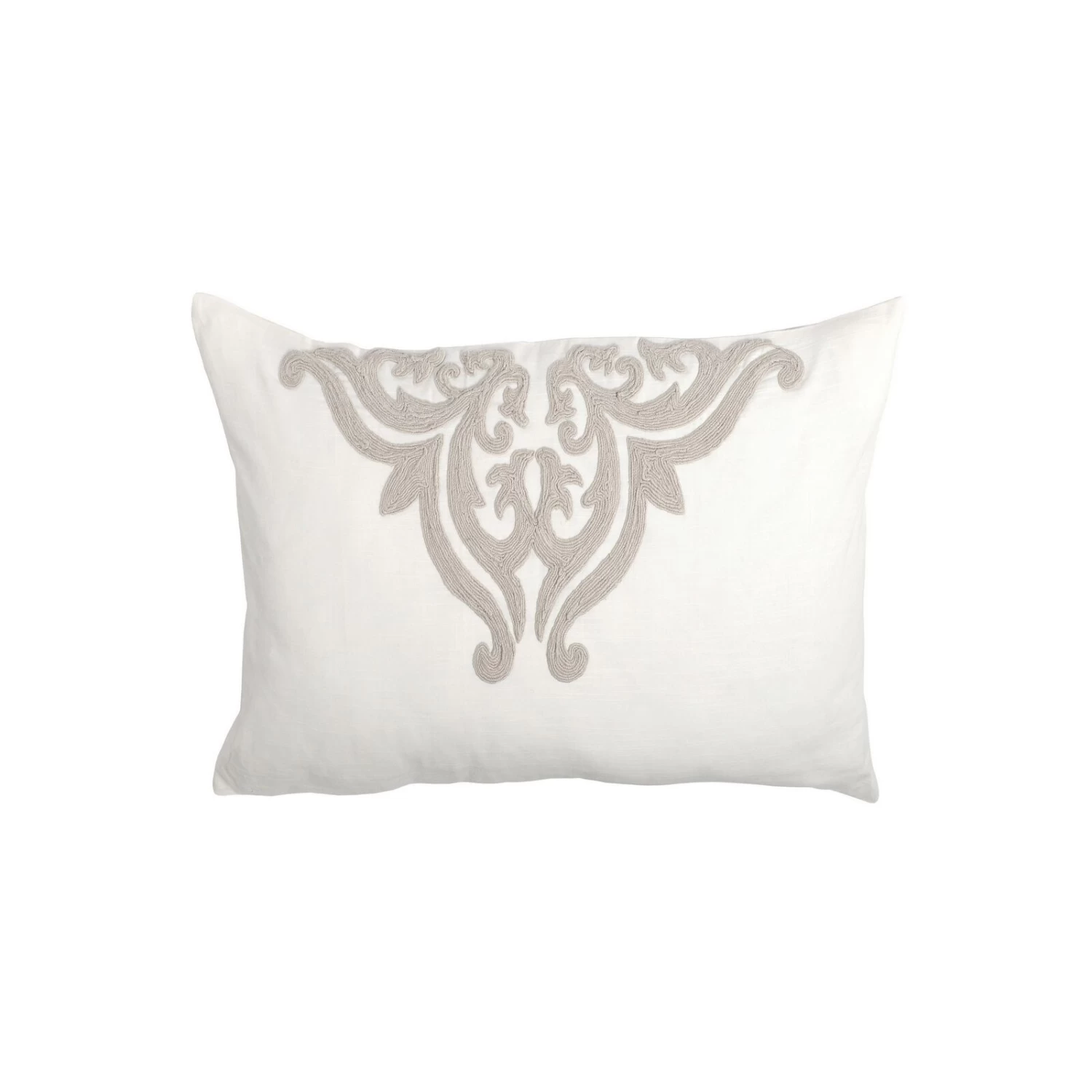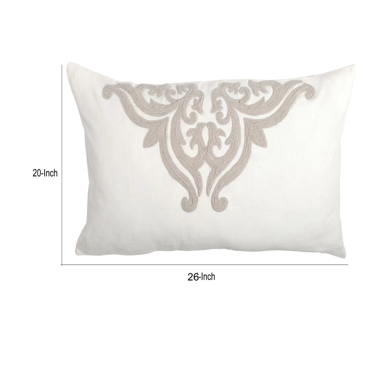 Lenz 26 Inch Cotton Standard Pillow Sham, Hand Stitched Embroidery, Ivory-Benzara
