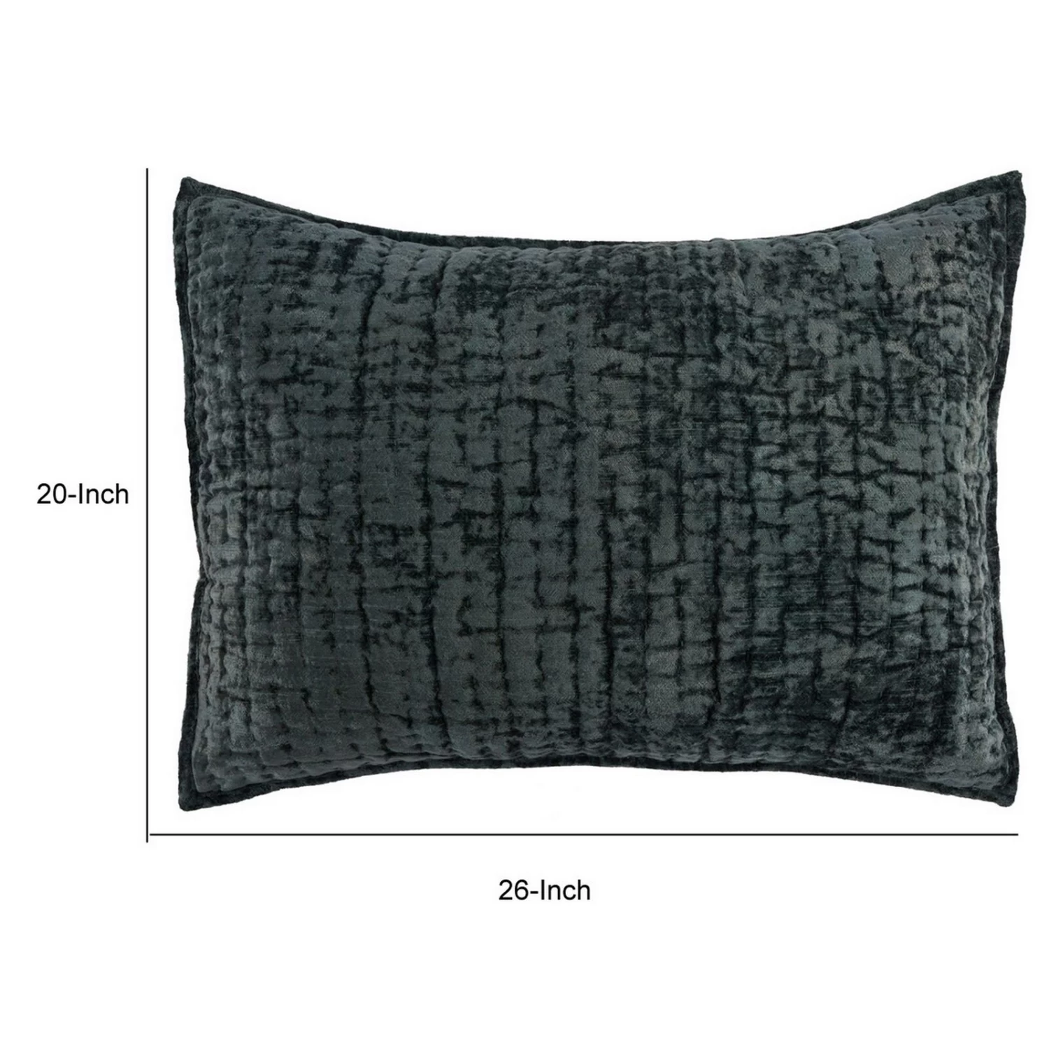 Lipa 20 x 26 Handmade Standard Pillow Sham, Rayon Velvet, Quilted -Benzara