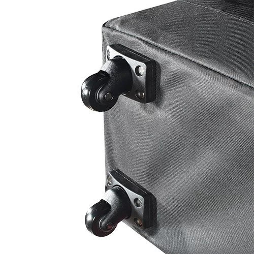 This luggage-style case has ergonomically placed reinforced handles that enable balance and easy maneuvering. High-impact nylon wheels with ball bearing glides making them smooth and indestructible. All case hardware is made of a heavy metal instead of plastic, increasing its durability and ease of use. This case is designed to carry any 25”-31” wide table and comes with a 1-Year Guarantee against manufacturer’s defects in materials and workmanship.
