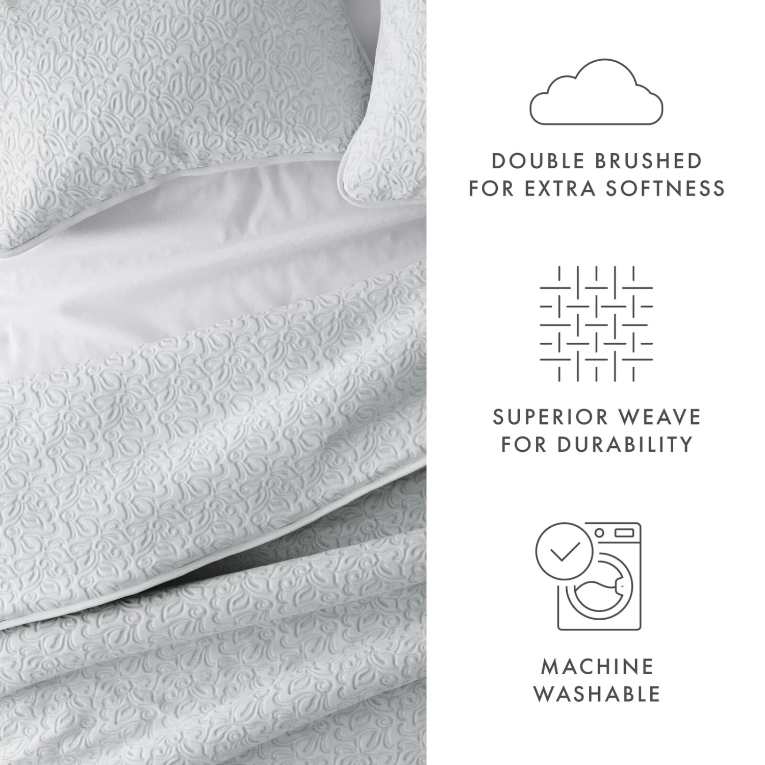 - Superior weave for durability and double-brushed for softness.