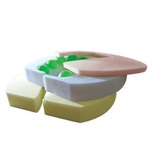 A revolutionary design and the union of comfortable padding and water spheres combine to deliver comfort and relaxation. The unique open space design helps avoid all pressure on the eyes and sinus cavities. 21 colors to choose from. Fits all Oakworks® headrest frames. 11″ round 4″ tall. Fabric: TerraTouch.