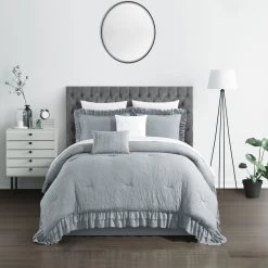 Chic Home Enzo Pinch Pleated Ruffled & Pin Tuck Sherpa Lined XLong BedBag Comforter Set Twin 2 Piece
