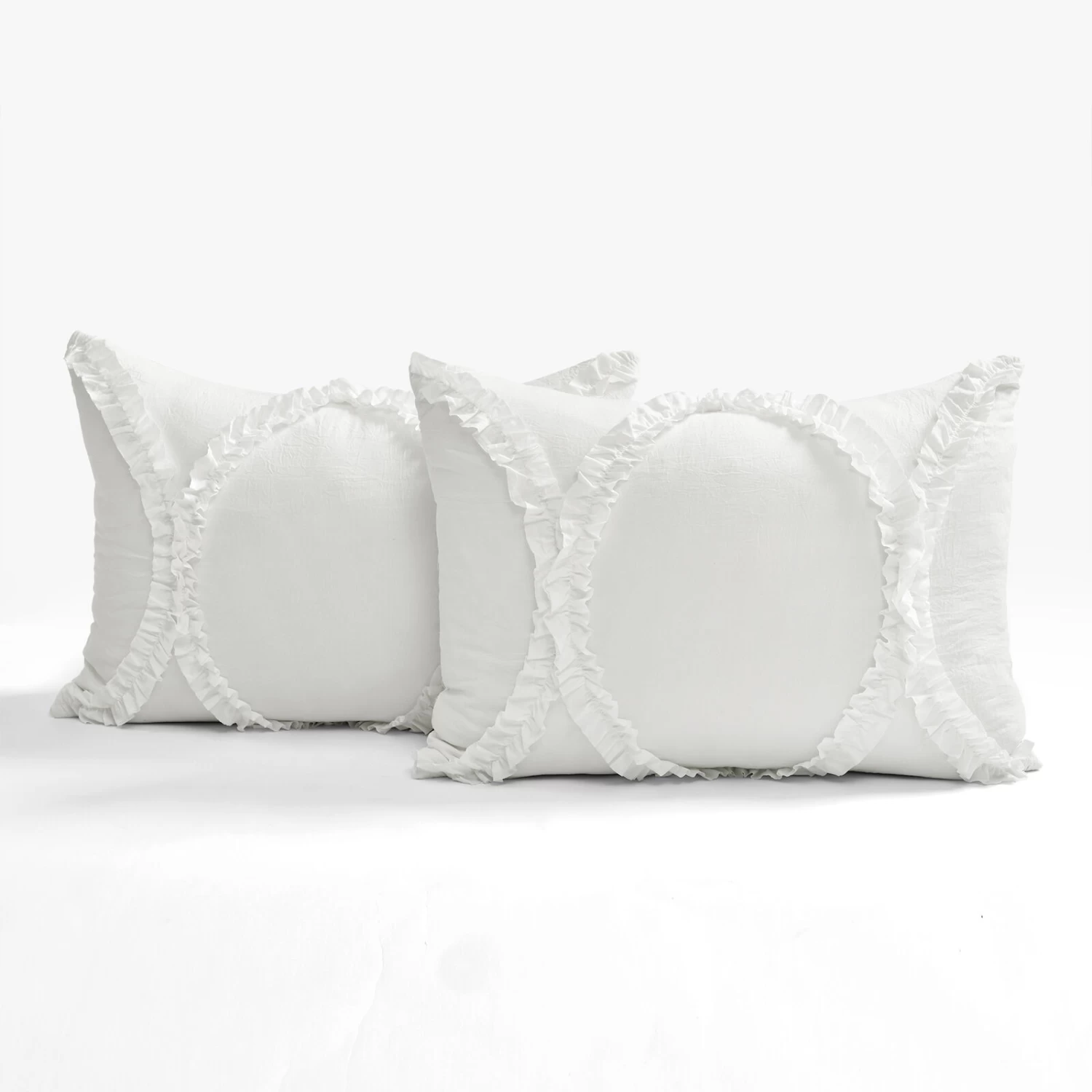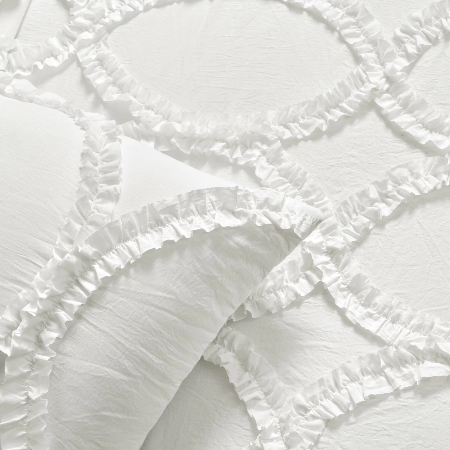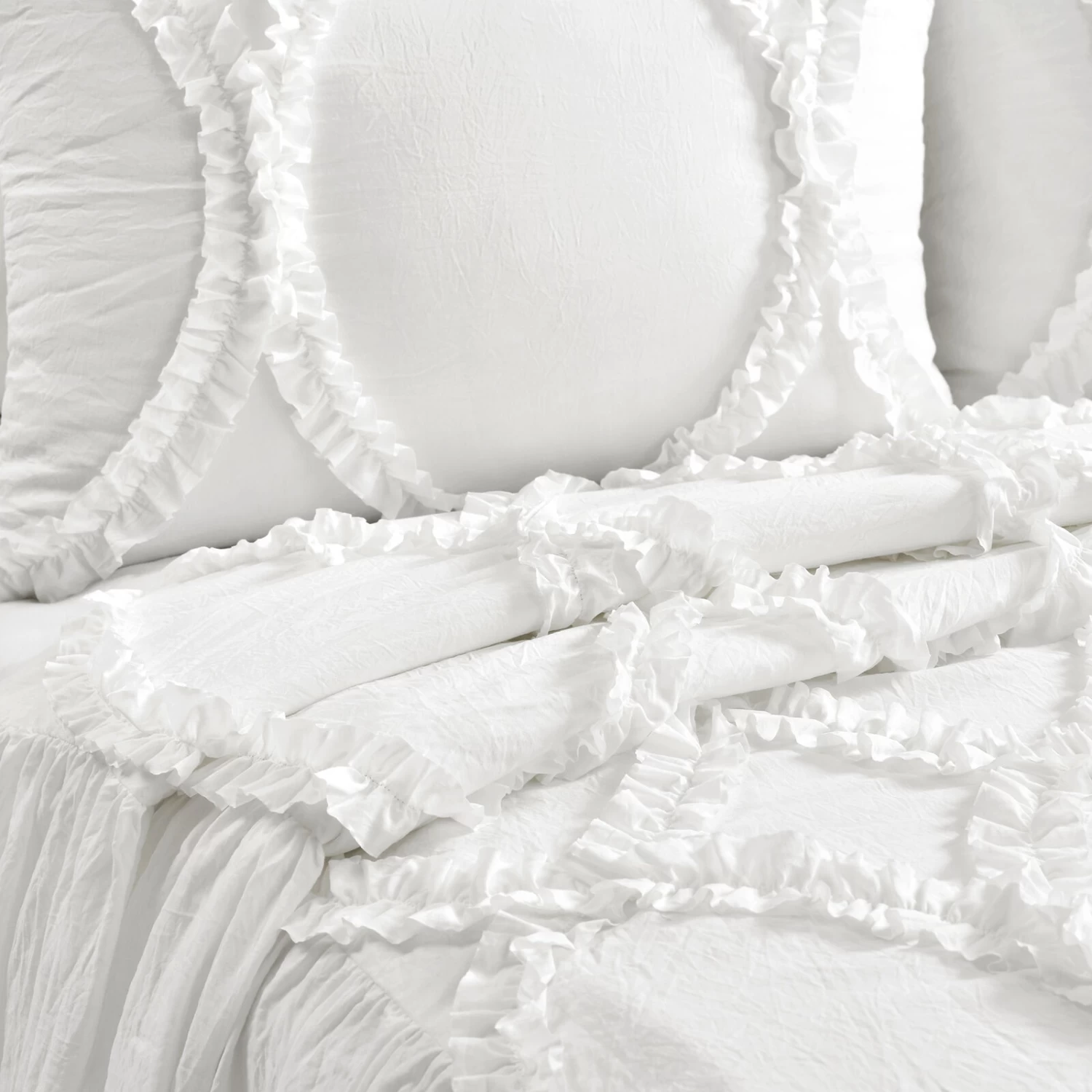 Update the decor of your primary or guest bedroom with this lovely textured bedspread set. The ruffled ribbon embroidery on the face of this bedspread overlaps to make a double helix design. A complement to any Parisian chic or farmhouse style bedroom.