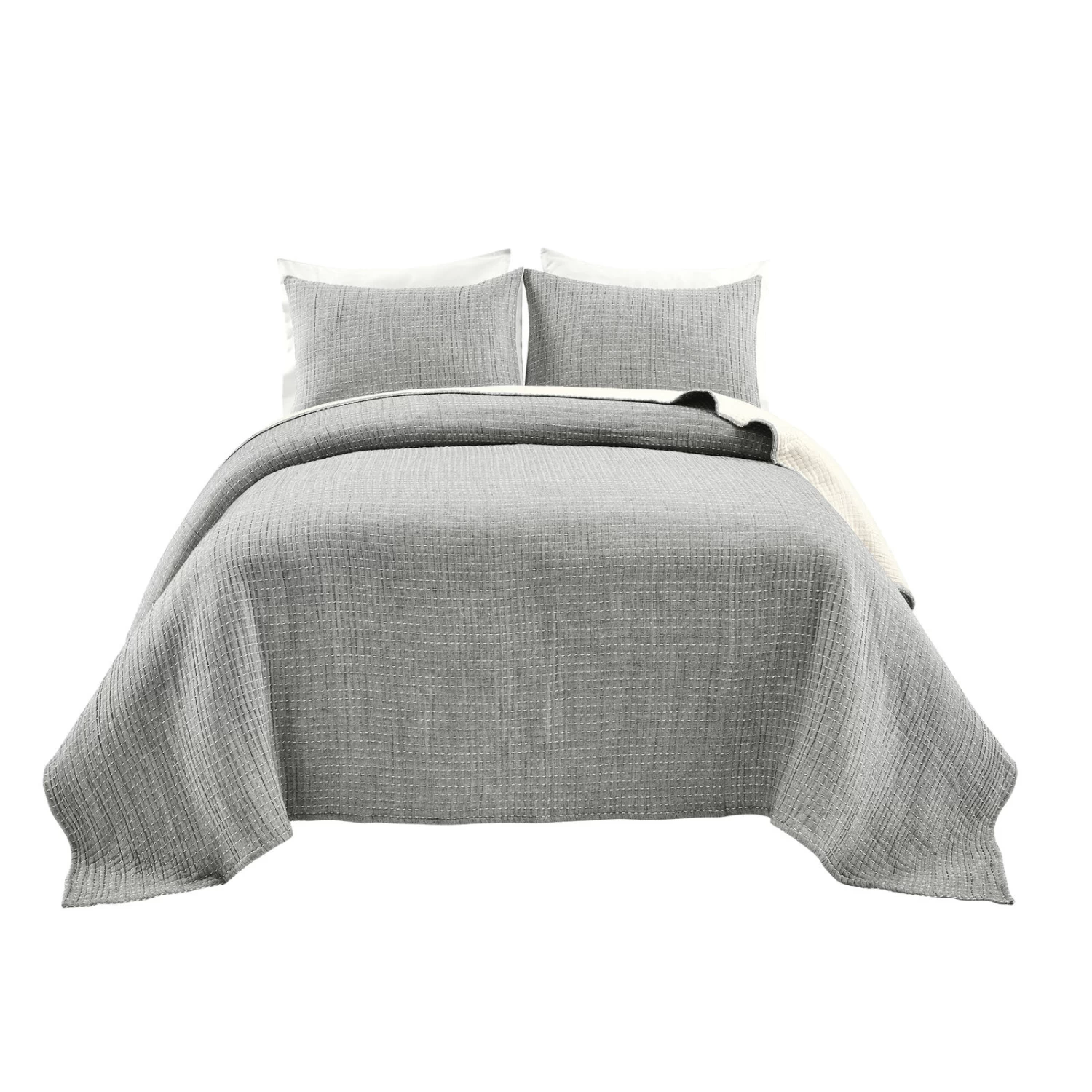 Give your bedroom a stylish upgrade with this 3-piece cotton quilt/coverlet set. This high quality affordable set is yarn dyed and woven with pickstitch detail for a textured solid color look. Use it as stand alone bedding or a layering piece.