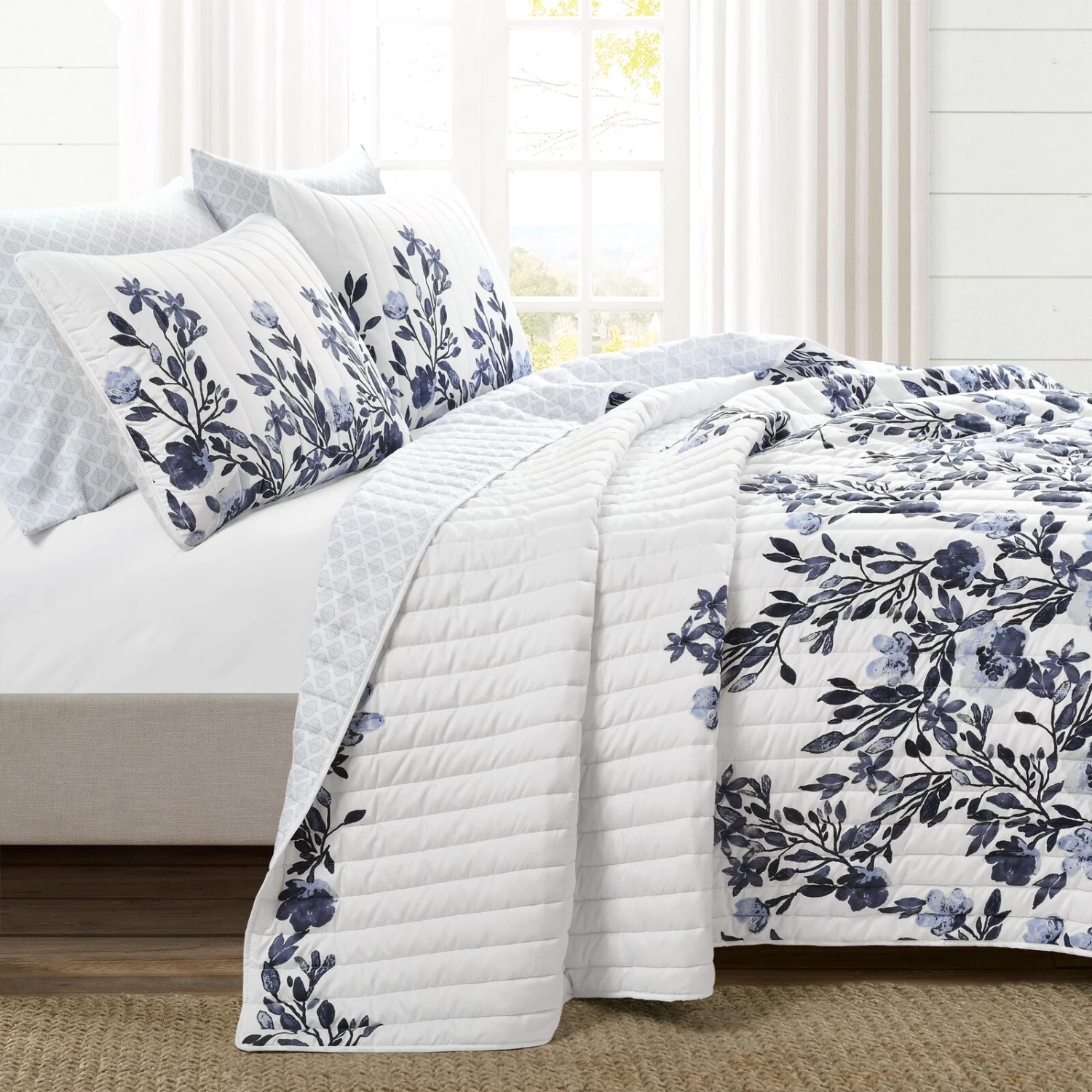 Add sophisticated style to your bedroom with this five-piece quilt set. The assemblage of flowers intertwined in growing vines offer a splendid update of traditional floral patterns. This set is ideal for anyone with a cottage charm, cottage core or farmhouse style home. Natural elements accent the inspiration behind this bedding set. Included with this quilt is two matching shams and two pillowcases. This quilt set is STANDARD 100 by OEKO-TEX® certified, which means the fabric, dyes and all components have been tested in an independent laboratory and certified against a list of more than 350 harmful substances. Please refer to the product labels for full care instructions.