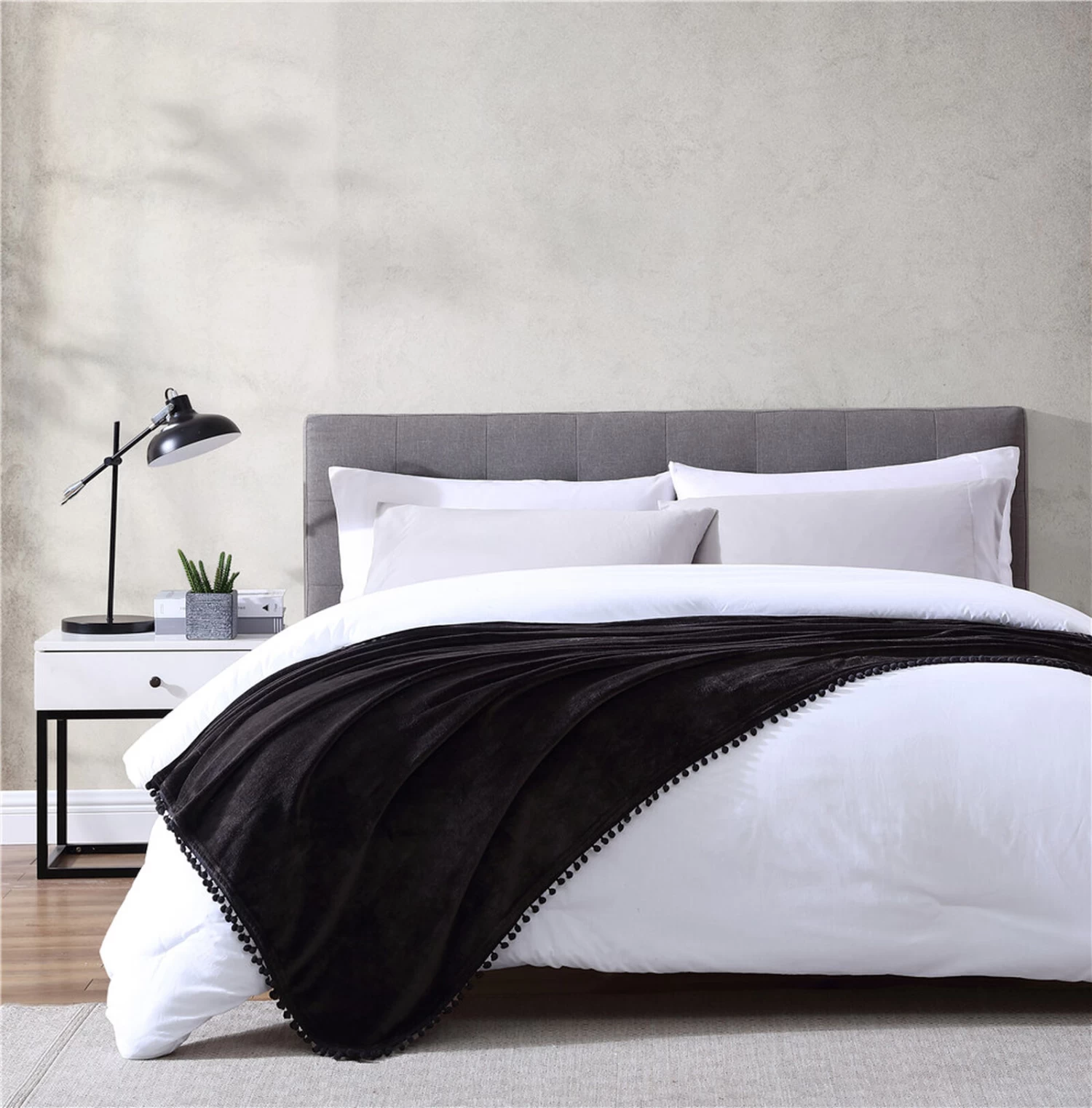 Walnut Flannel Pompom 50″ x 70″ Throw Black